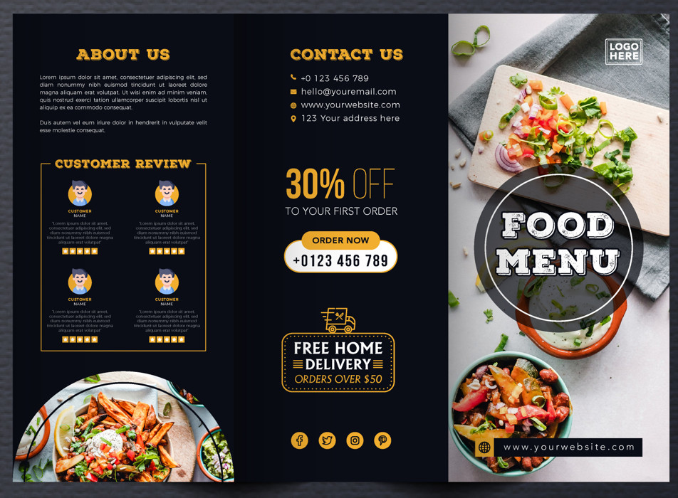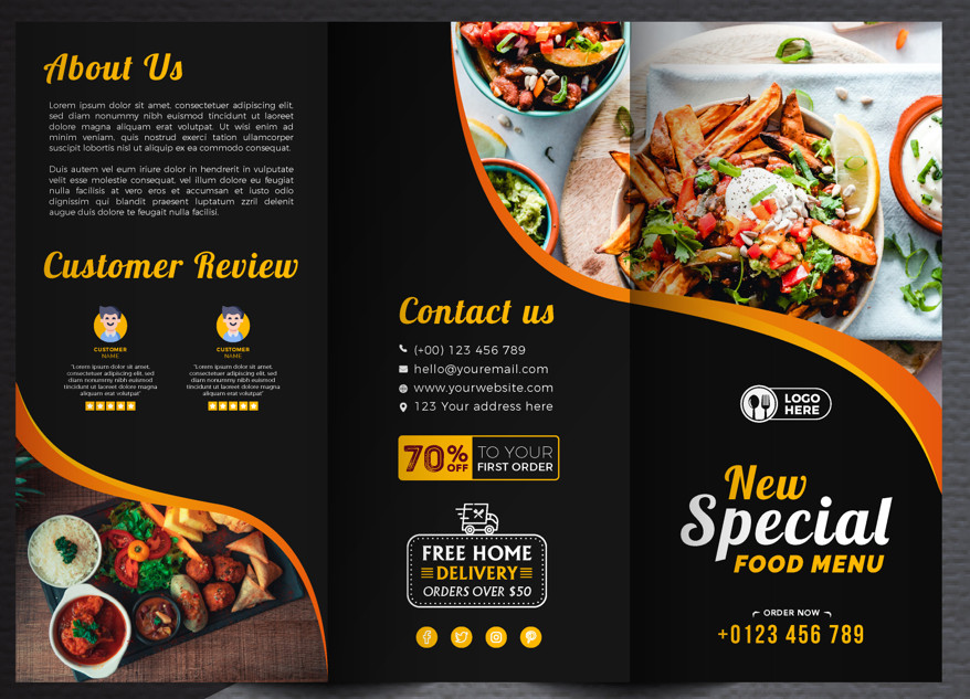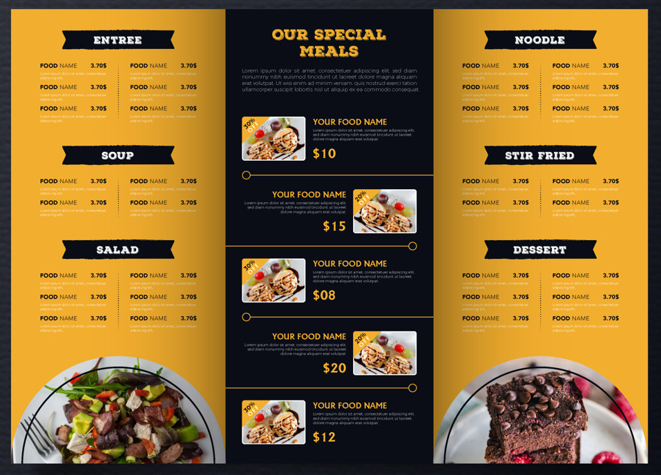 2- Mẫu menu nhà hàng gấp 3 màu đen và vàng