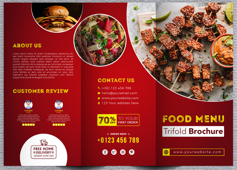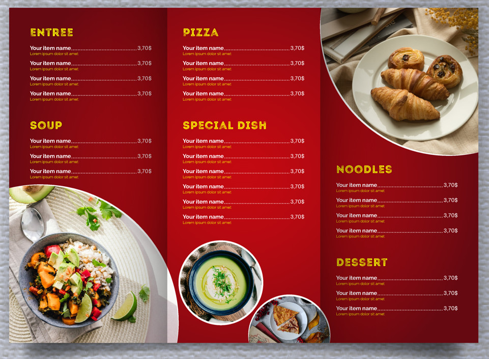 4 - Menu/ thực đơn quán nhậu, quán ăn gia đình- màu chủ đạo là màu đỏ - kiếu gấp 3