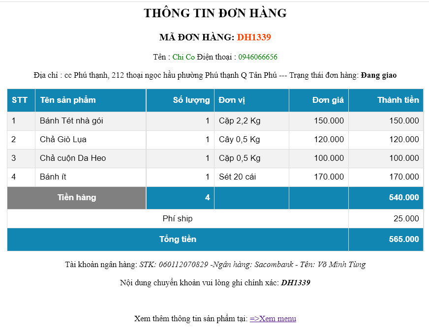 2. Tạo menu có chức năng đặt hàng